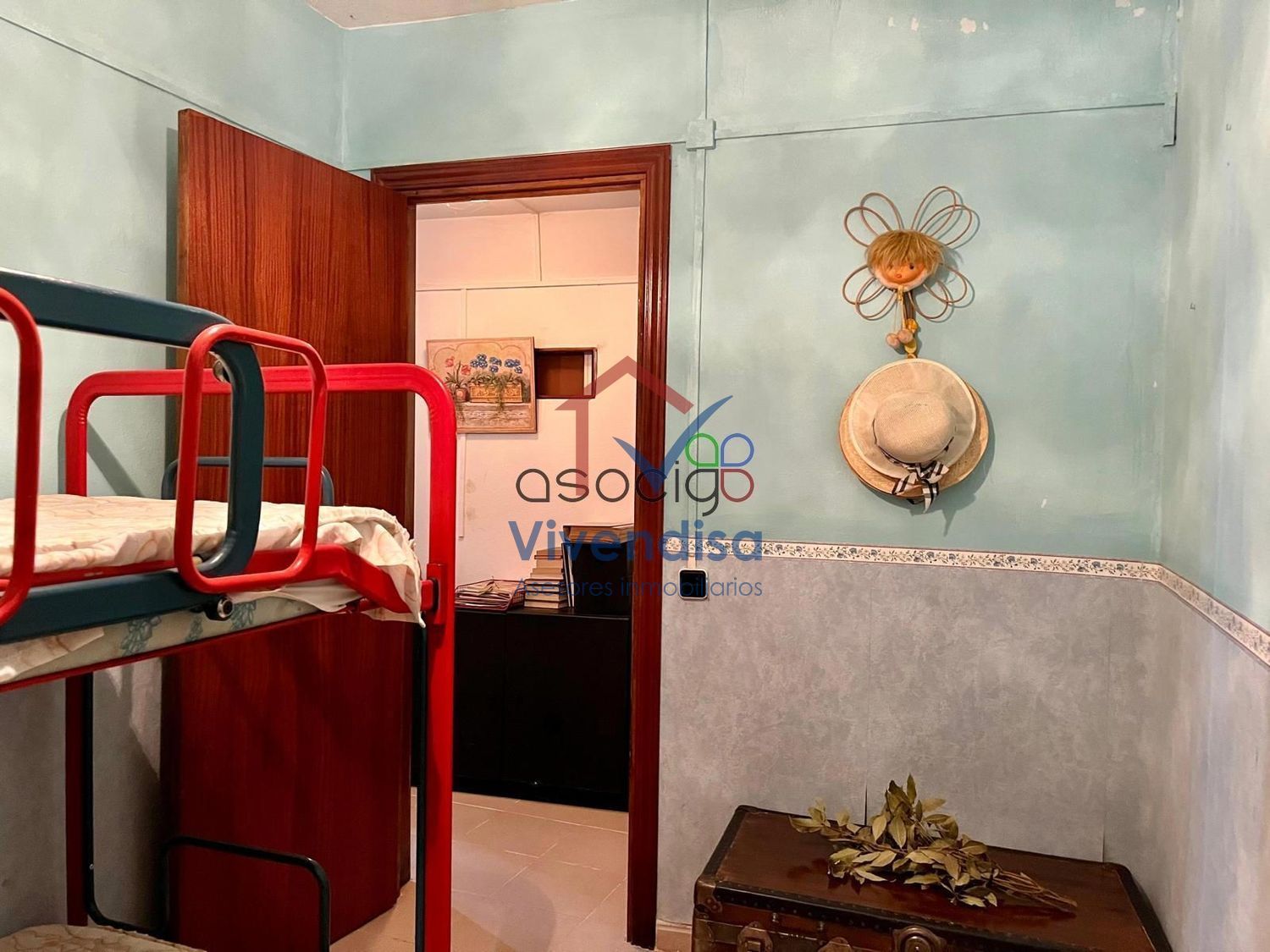 Se compone de distribuidor, accedemos a 2 amplios dormitorios (uno de ellos con aseo), a 2 pequeños trasteros ideales para guardar tus utensilios, al baño completo y al salón con la cocina integrada. Hay además 2 pequeñas habitaciones (sin ventana exterior) que pueden valer para diferentes usos, ahora mismo están amuebladas con una litera y con una cama respectivamente.