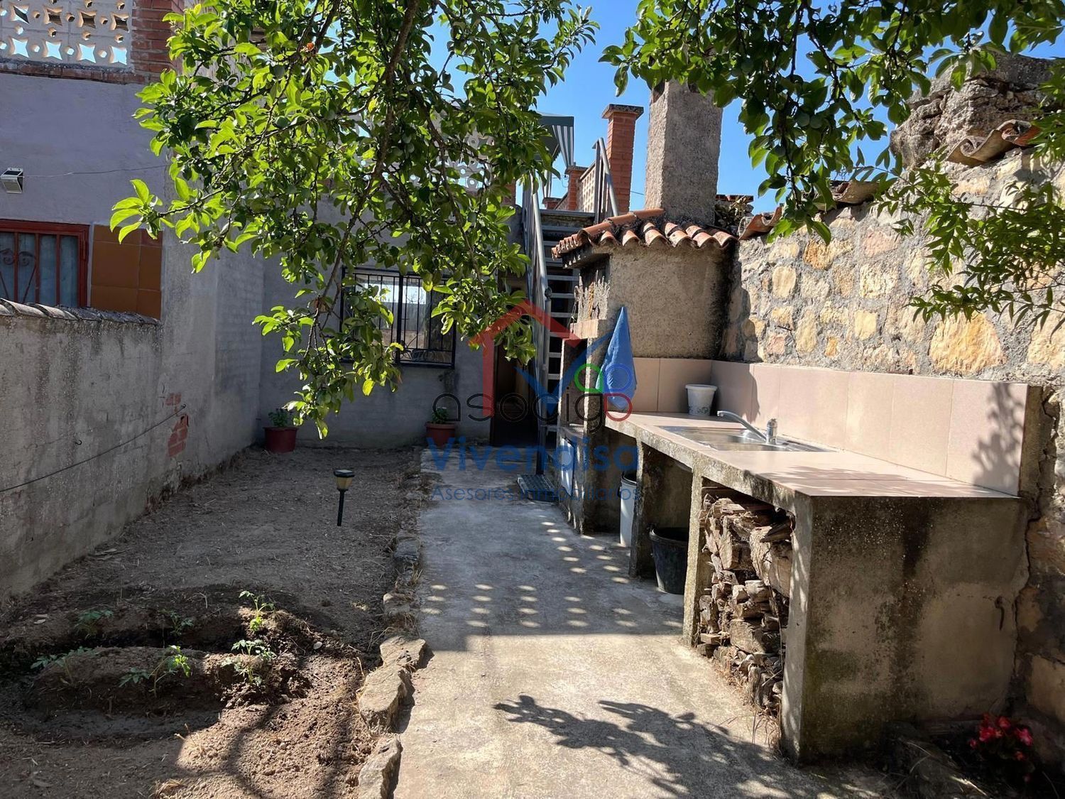 Atravesando estas dependencias, salimos al patio, un espacio abierto en que aprovechar los largos días del verano, cuenta con un pequeño huerto, un fregadero y una barbacoa.
