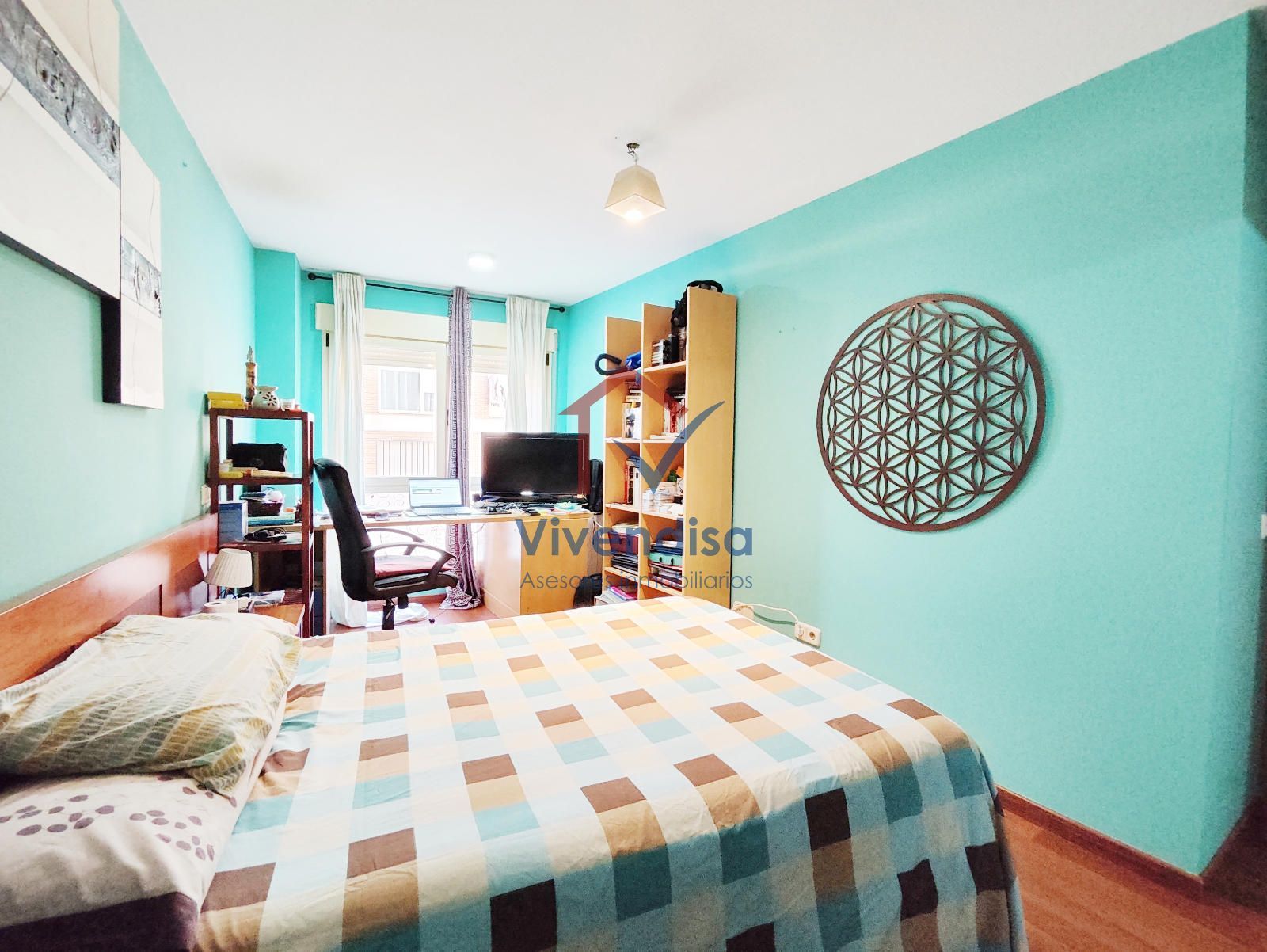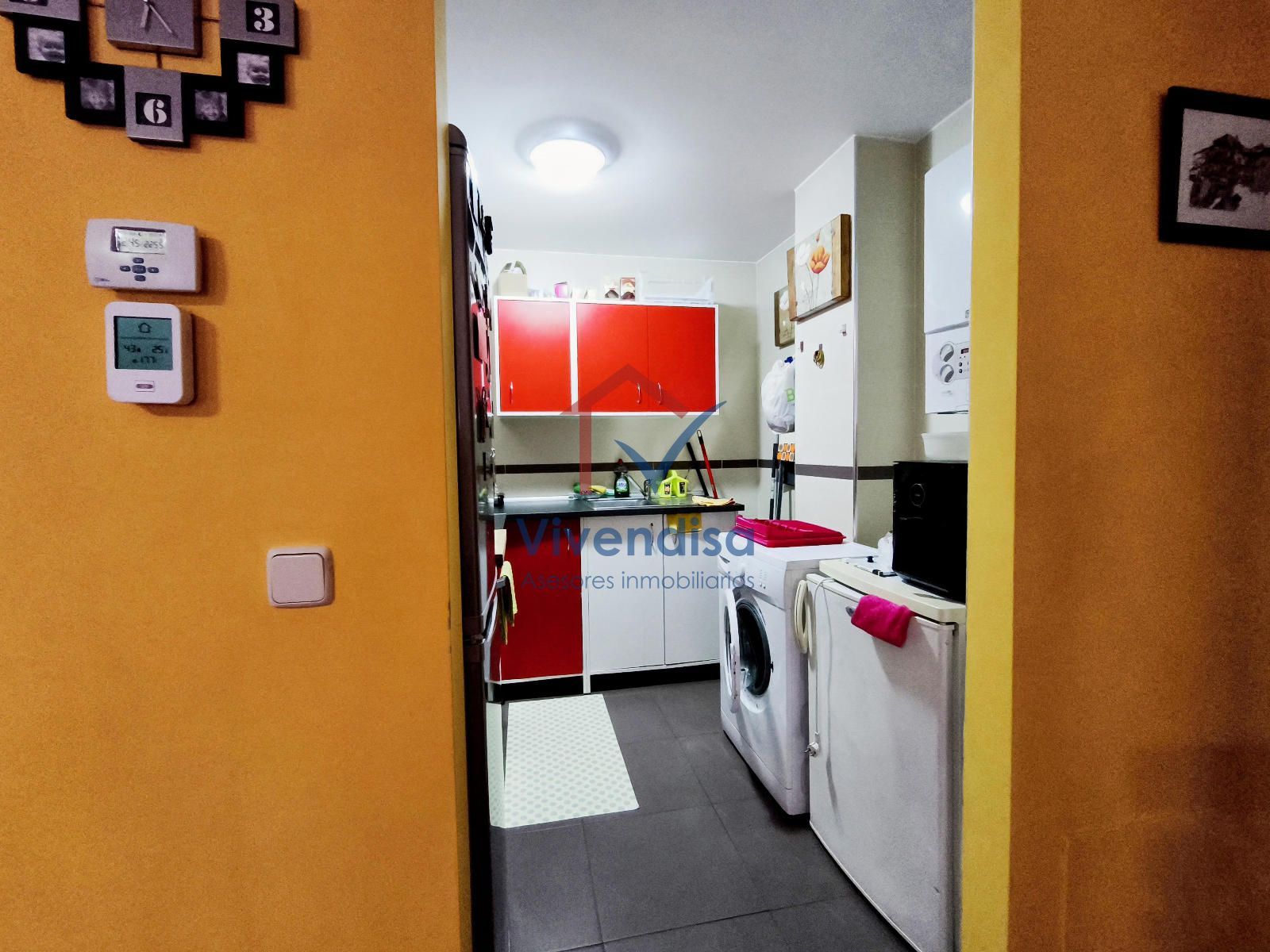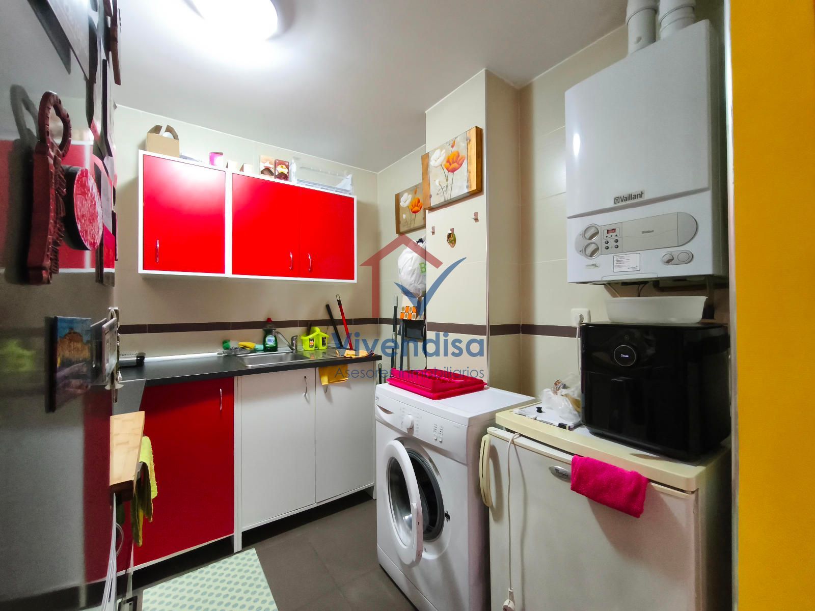 La vivienda se encuentra en un edificio moderno con ascensor y placas solares para el apoyo al agua caliente sanitaria, lo que mejora la eficiencia energética y reduce el consumo.