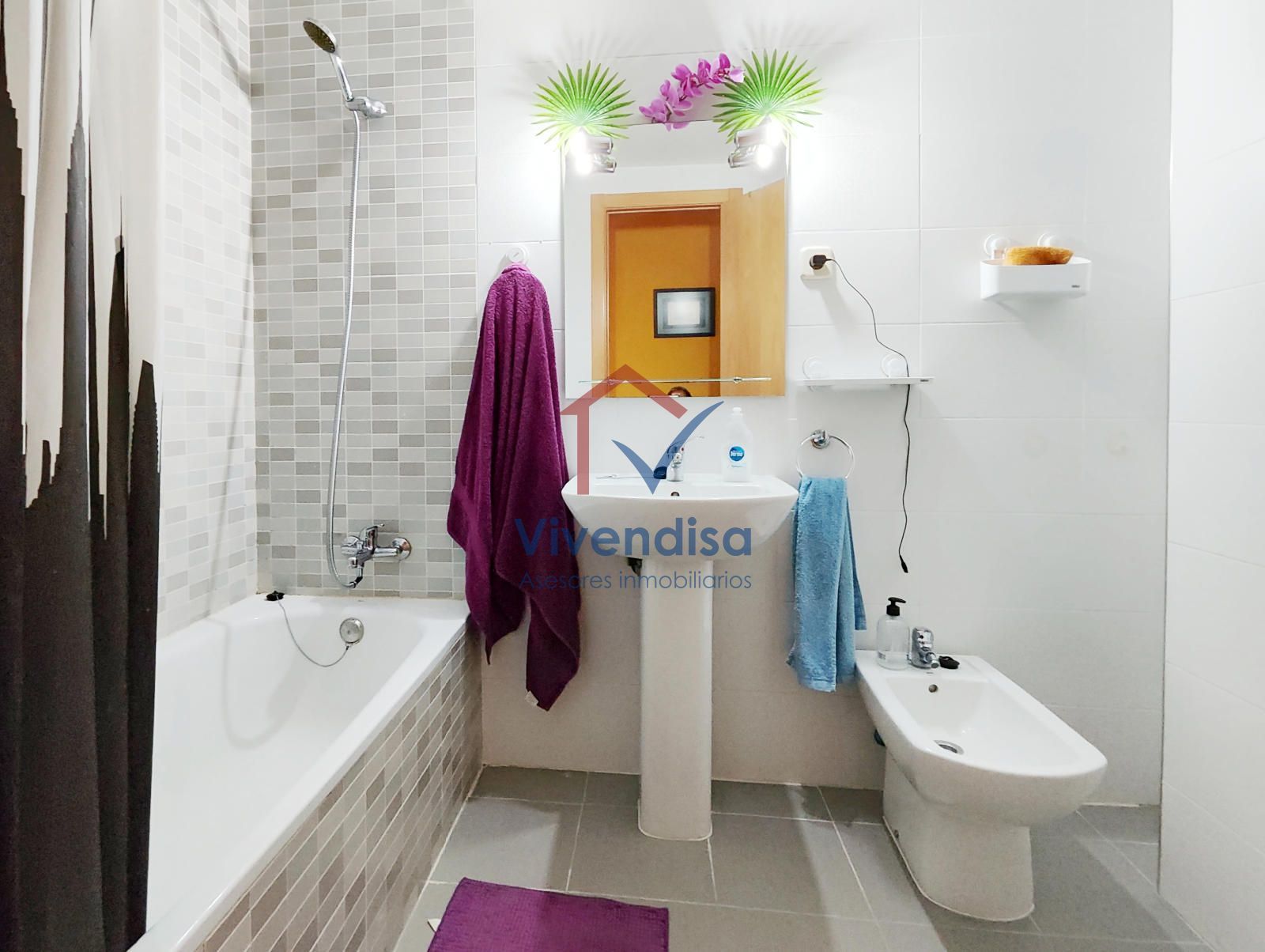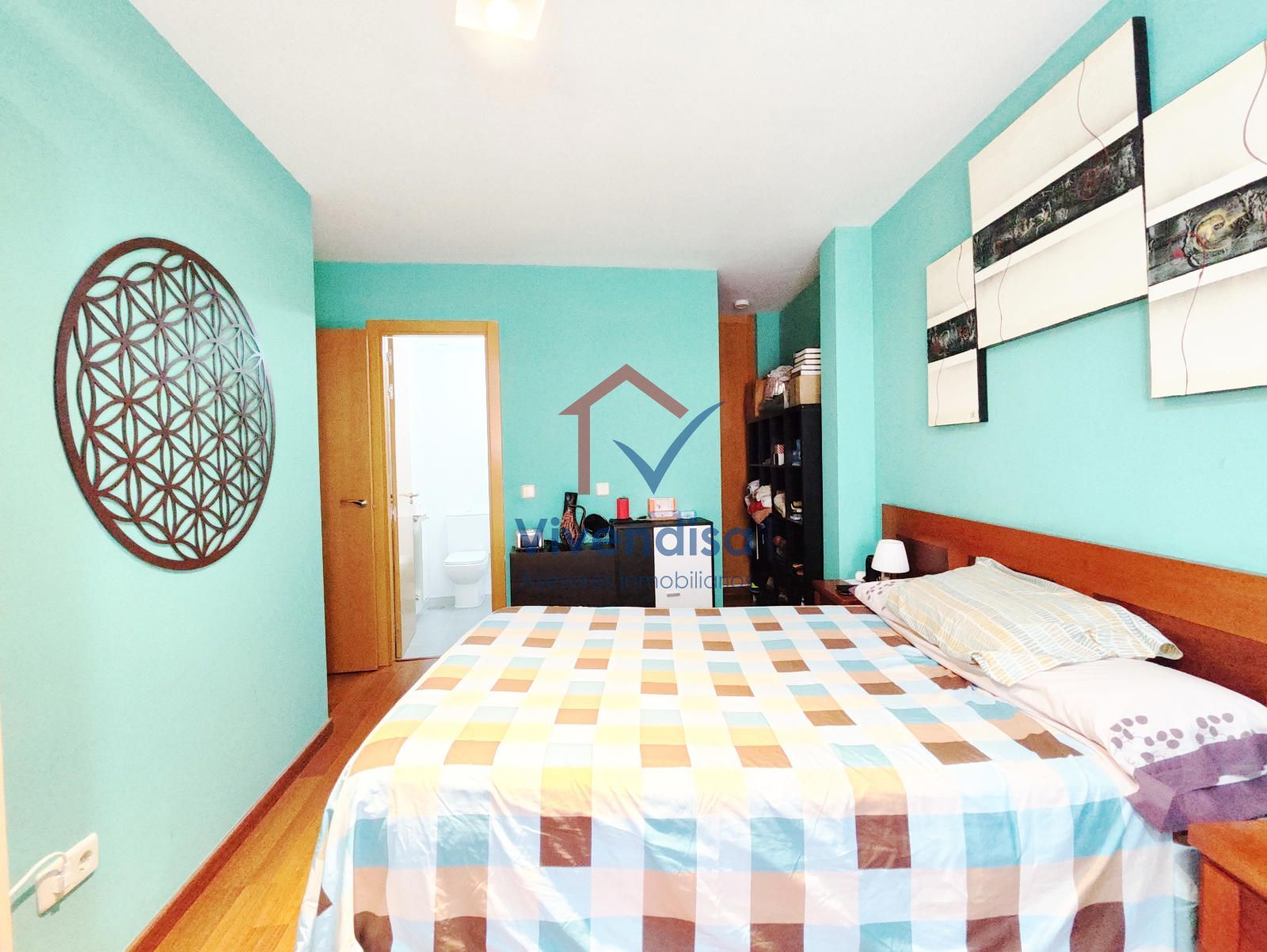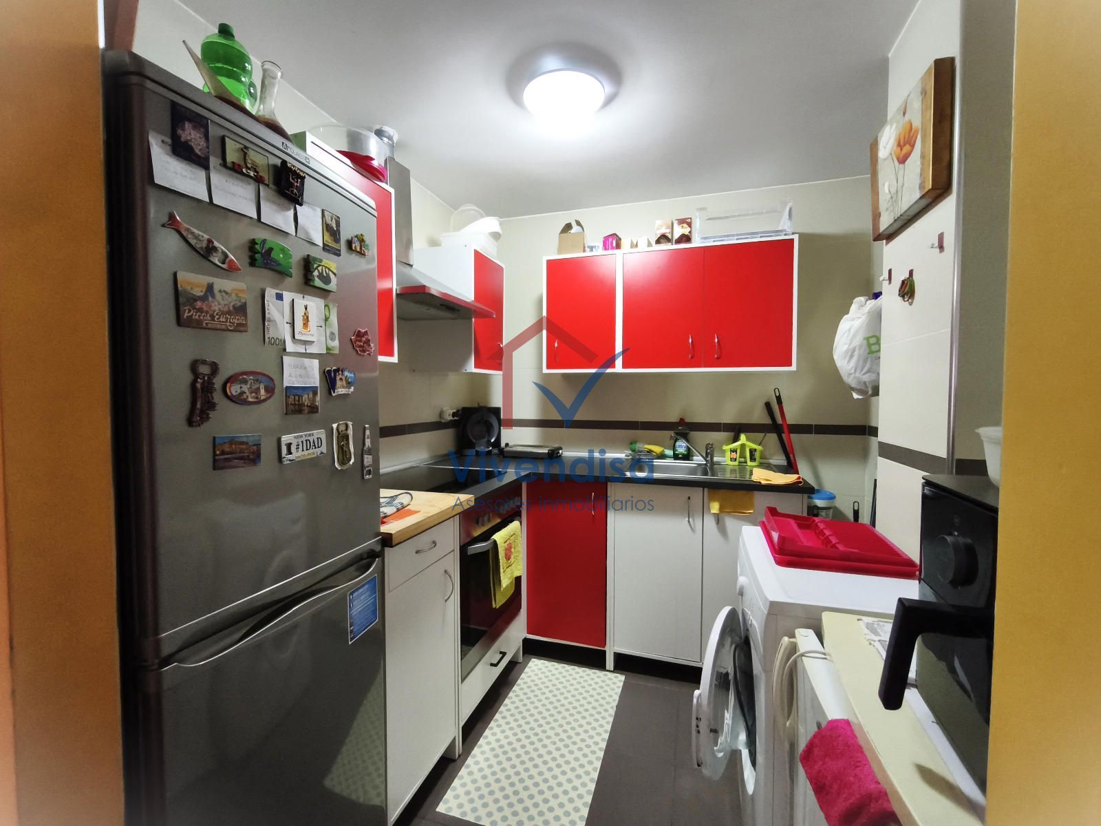 La vivienda se encuentra en un edificio moderno con ascensor y placas solares para el apoyo al agua caliente sanitaria, lo que mejora la eficiencia energética y reduce el consumo.